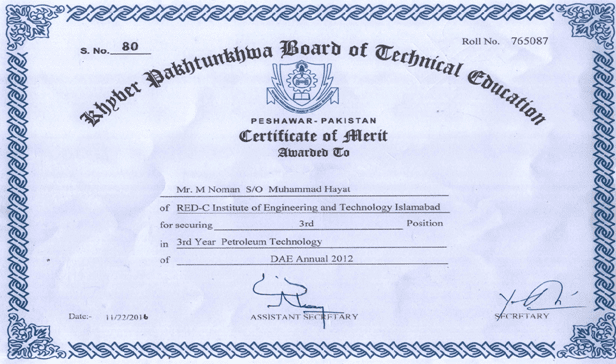 Position: 3rd position holder in Petroleum & Gas Technology